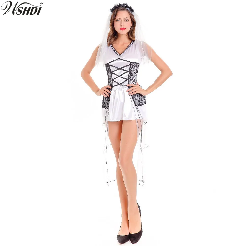 Bruid kostuum. Om een jurk uit de bruid feestartikelen te kiezen voor je huwelijk gaat zelfs ons een beetje te ver maar voor een vrijgezellenavond zou je al wel vast een en ander in huis kunnen gaan hallen. Dit spook bruid kostuum voor vrouwen bestaat uit een prachtige bruidsjurk en een sluier. In kindermaten en in xs tot en met xl. Ga als bruid naar carnaval en zorg er met een bruidegom kostuum voor dat je ook je man op een mooie manier aan kunt kleden.