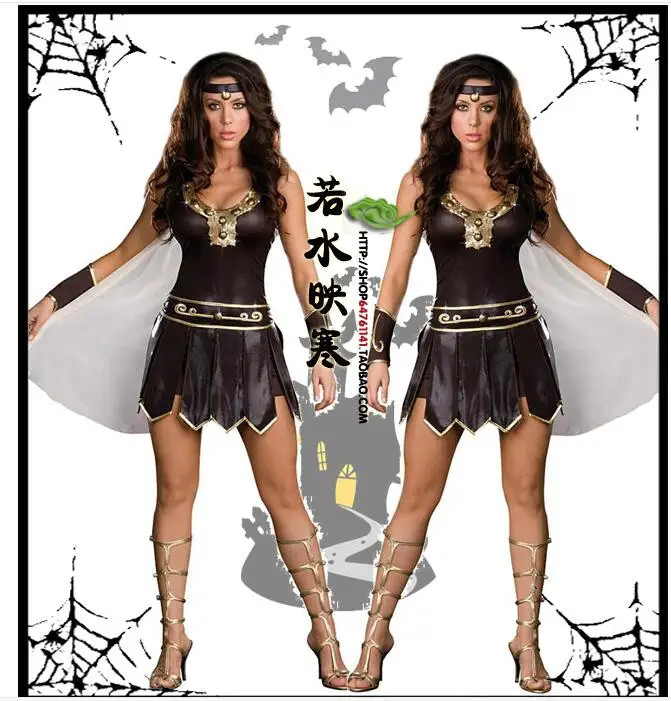 Gladiator dames kostuum. 3638 4042 en 4446 bestaande uit. Romeinse gladiator kostuum dames beschikbare maten. Romeinse gladiator kostuum kind. Dit gladiator kostuum voor dames bestaat uit een jurk een cape een riem beenstukken en twee manchetten.