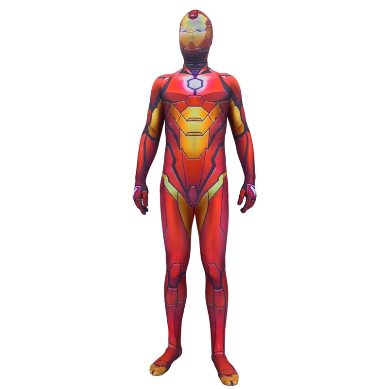 Ontdek de grootste online catalogus voor je unieke verkleedfeest halloween en carnaval. Het is rood met geel wit en zwart. Dit iron man morphsuits kostuum bestaat uit een zeer elastisch second skin eendelig pak. Het iron man masker is afgebeeld op de muts en met een rits aan de achterkant kan het makkelijk aangetrokken worden.