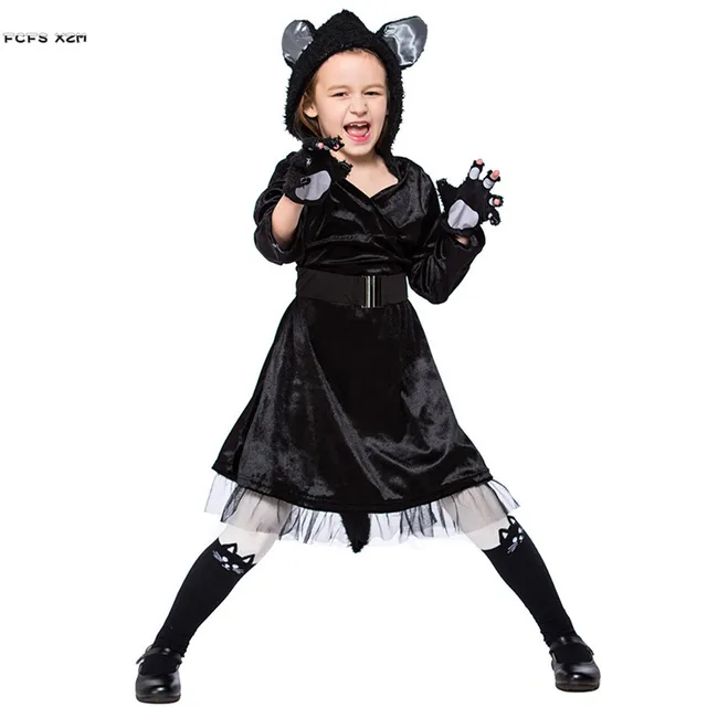 Kostuum zwarte kat. Ben je meer van de tijgers kijk dan eens naar onze tijgerprint kleding. Gierend van de lach loop je door de kamer. Het bestaat uit een pak een masker handschoenen een riem en een pruikhet zwarte pak heeft een rits aan de voorkant. Dit zwarte kat heks kostuum meisje hoef je niet te leren wat toveren is.