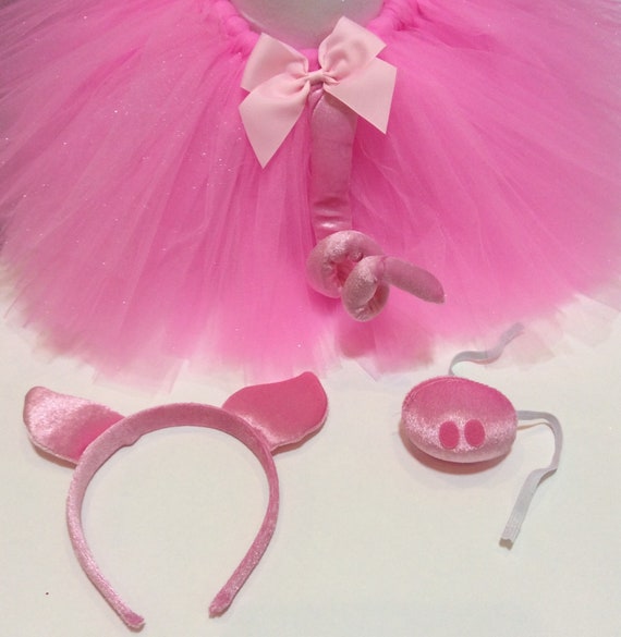 De diadeems varkens oren en de varkens neus zijn van roze pluche materiaal gemaakt. Het kostuum heeft een one size maat welke valt als ongeveer ml 5254. Een broek met aangehechte bretels met witte details. Maar er is ook een mogelijkheid dat de oren meer aan de zijkant zitten.
